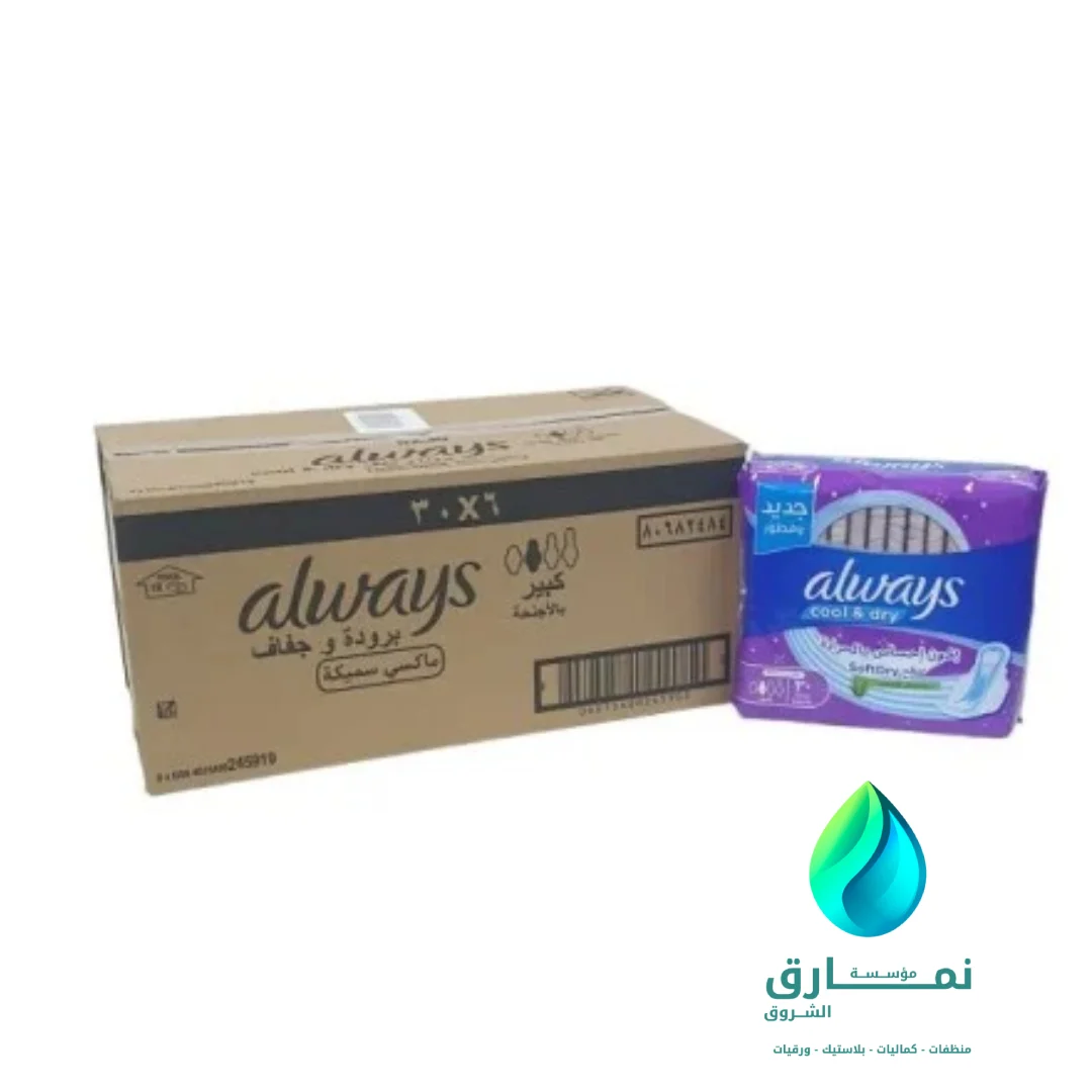 فوط صحية اولويز بنفسجي ماكسي سميكة شد 30*6